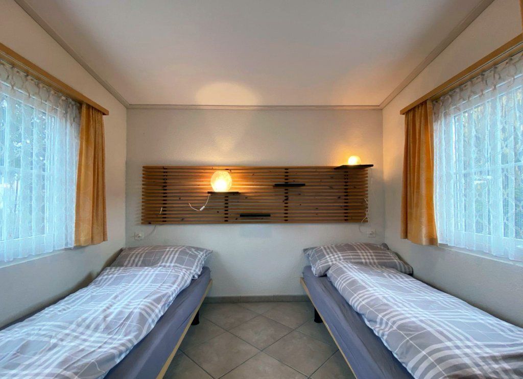 Die Unterkunft bietet Platz für vier Personen. Eine integrierte Heizung und Fussbodenheizung sorgt auch an kalten Tagen für einen angenehmen Aufenthalt. Duschkabinen und eine Waschküche (Waschmaschine und Trockner) stehen wenige Meter ausserhalb der Unterkunft auf dem Campingareal zur Verfügung.